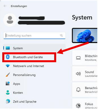 2. Klicken Sie nun auf "Bluetooth und Geräte" in der linken Spalte