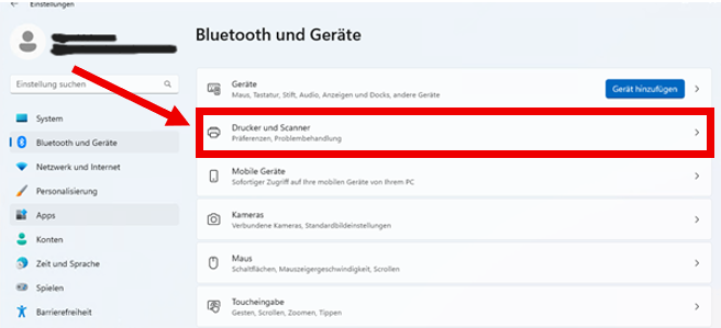 3. Im mittleren Bildbereich klicken Sie nun auf "Drucker und Scanner"