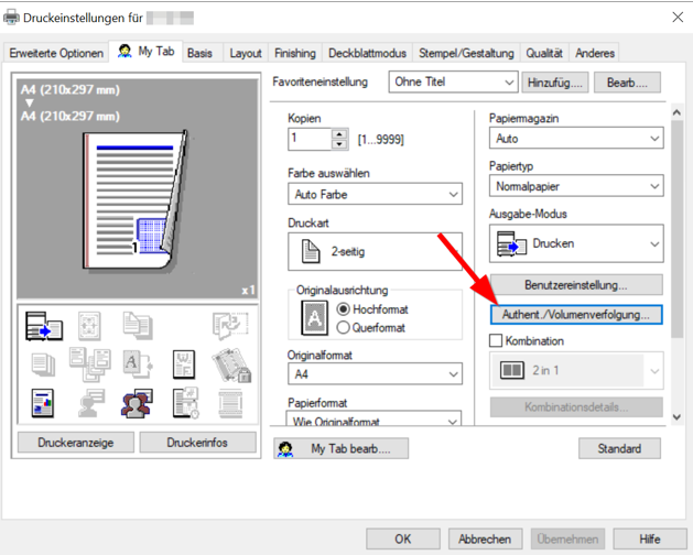 6. Im Reiter "My Tab" wählen Sie die Option "Authent./Volumenverfolgung" aus