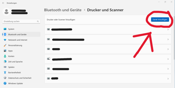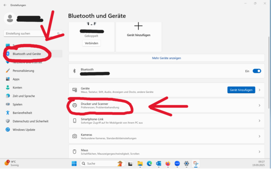 Dann auf der rechten Seite auf „Drucker und Scanner“.
