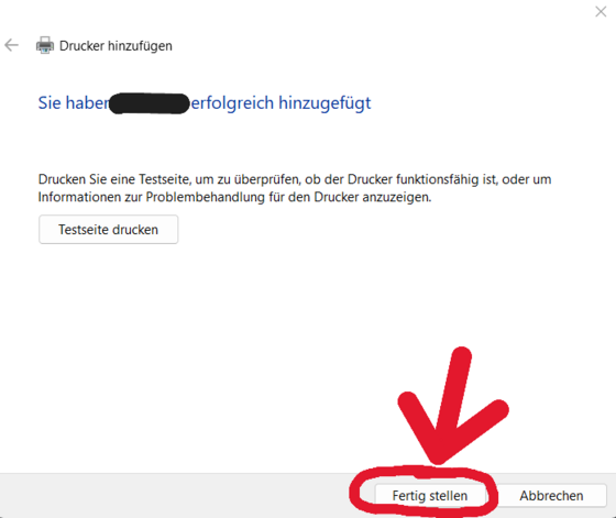 12. Schließen Sie die Einrichtung des Druckers über den Button „Fertig stellen“ unten ab.