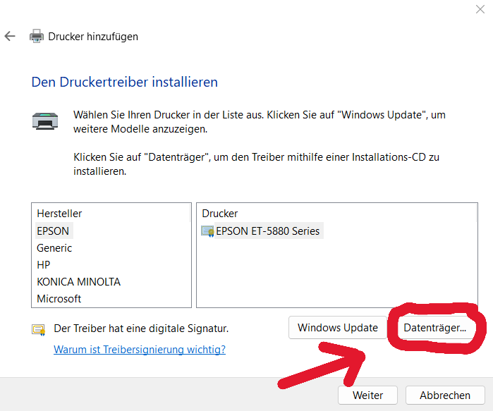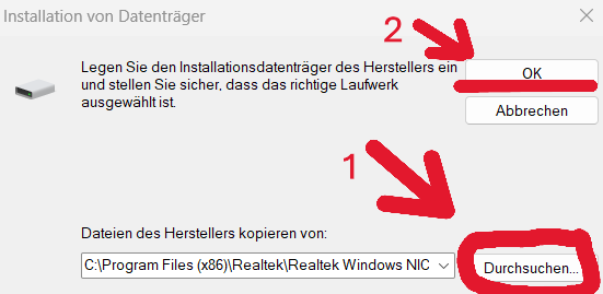 Bild 2: Drücken sie auf „Durchsuchen“ und wählen den Speicherort des Treibers aus.