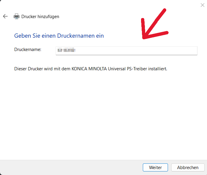 10. Hier geben Sie dem Drucker einen Namen.