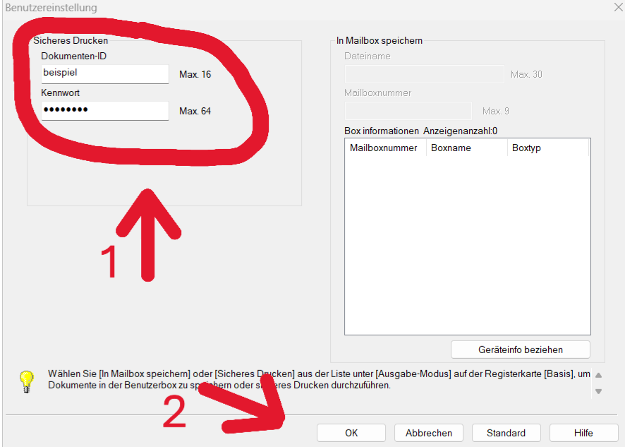7. Hier schreiben Sie eine Dokumenten-ID und ein Kennwort nach Ihrer Wahl z.B ihr Name