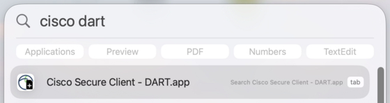 - öffnen Sie die vorgeschlagene Cisco DART App